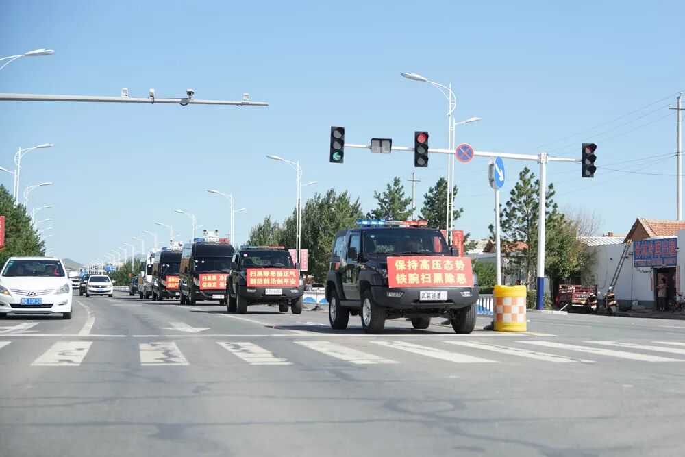 林西县公安局全体民警进行扫黑除恶誓师大会巡游。