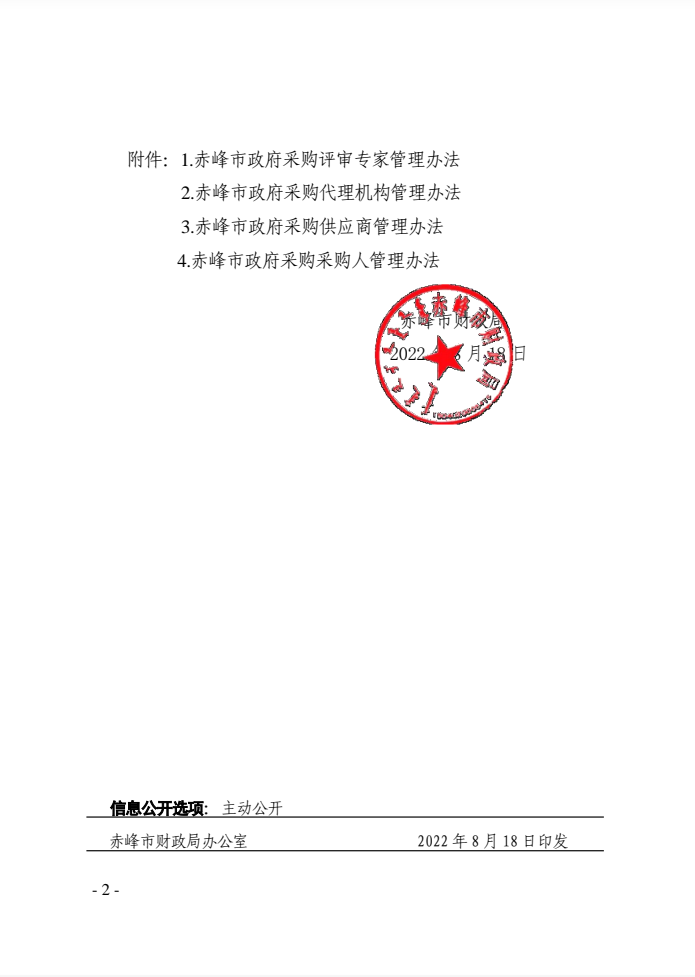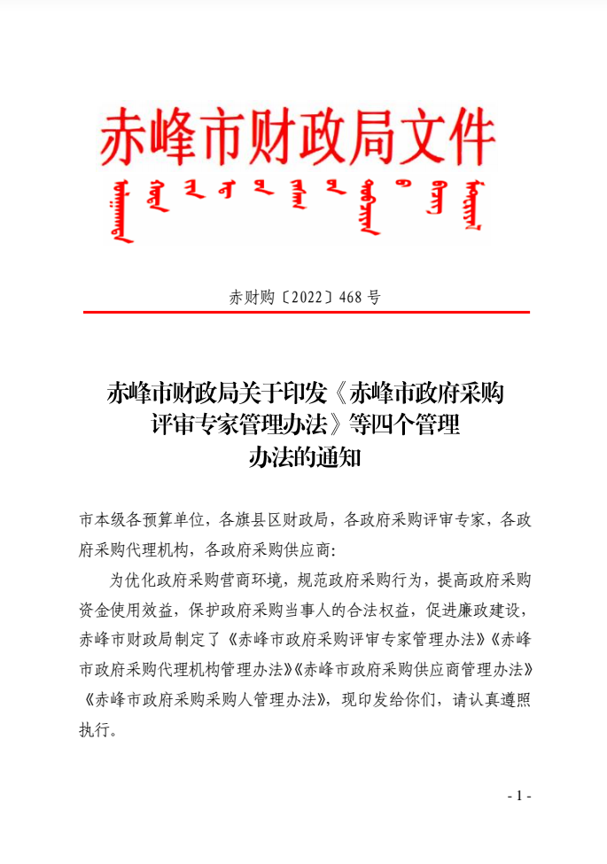 赤峰市财政局关于印发《赤峰市政府采购评审专家管理办法》等四个管理办法的通知