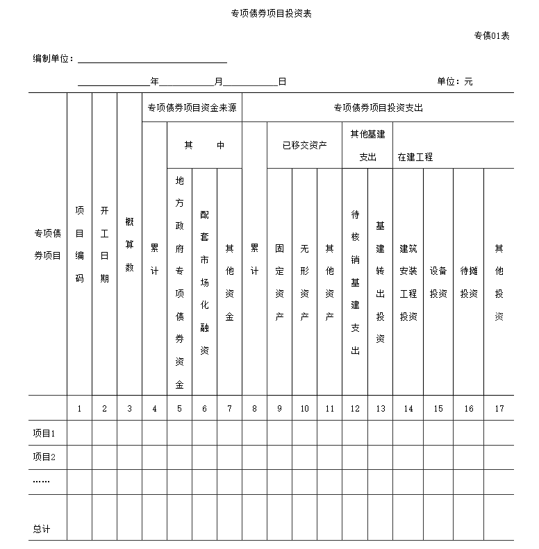 2.项目单位应当在本规定施行之日,编制“专项债券项目投资表”和“专项债券资金还款情况表”。